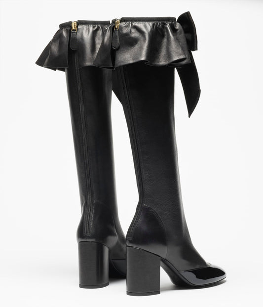 Double-C Striped Peep Toe Wedge Ankle Boots