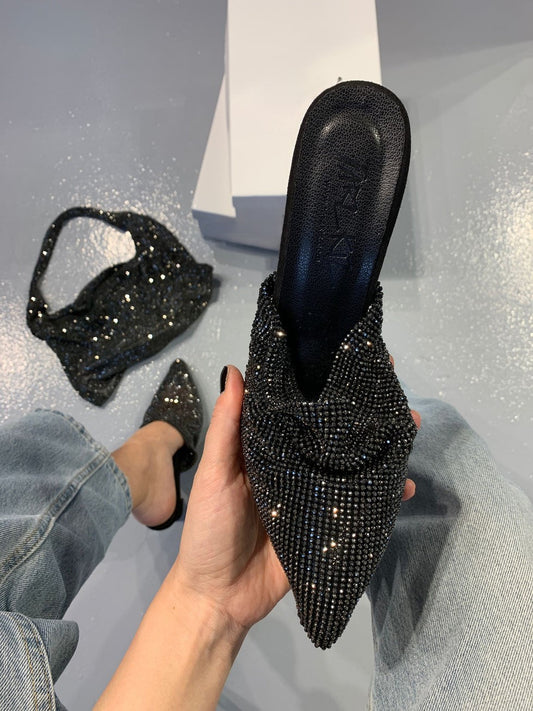 Star Rhinestone Sparkle Square-toe Flat Slip-on Loafers